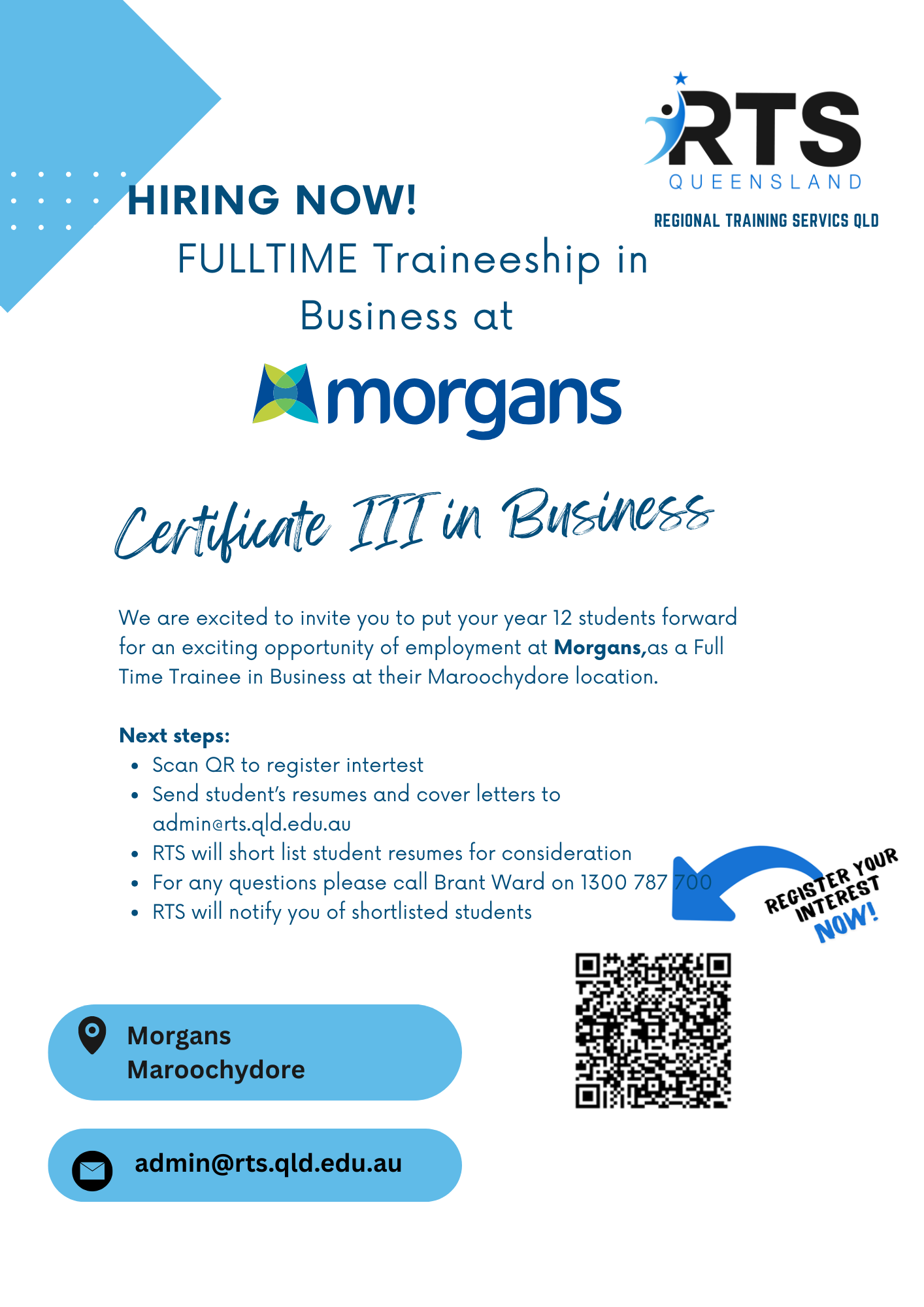 Get paid while learning new skills, hands on industry experience, get credits towards your QCE.